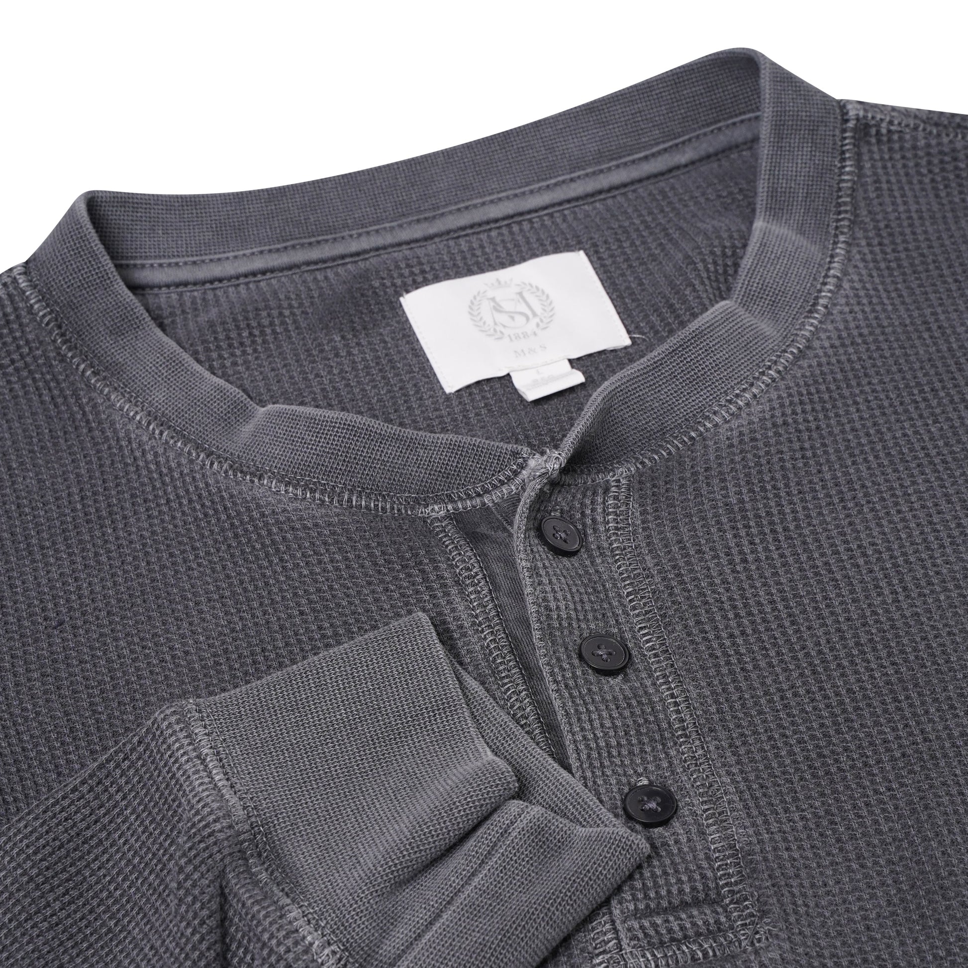 M&S Henley Waffle Long Sleeve Top