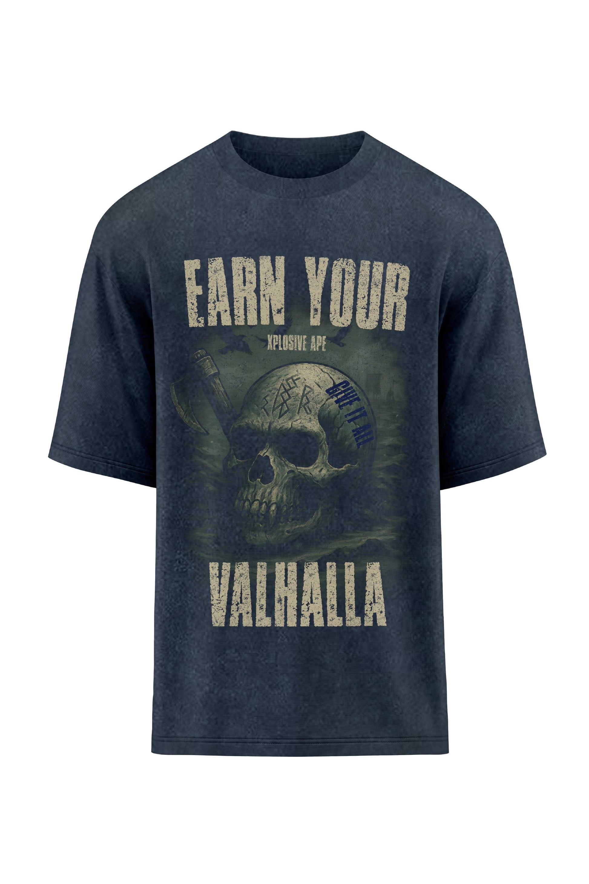 XAPE Earn Your Valhalla Oversized Tee - Acid Wash Black